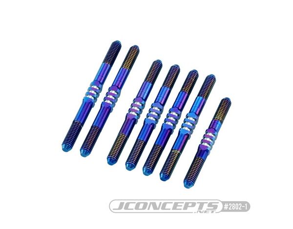 JConcepts turnbuckle adjustment wrench is offered separately as part # 2234. The burnt blue turnbuckles have intentional sporadic coloring ranging all around the blue spectrum.