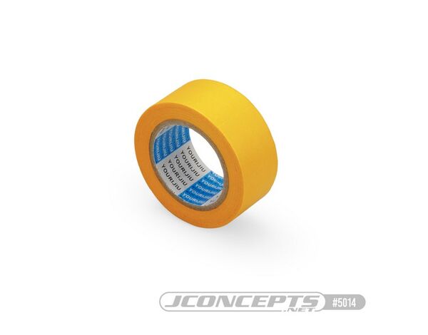 JConcepts - body shell masking tape - 24mm x 18m As a body shell and accessory manufacturer, we are typically asked for products associated with competing a project. As common as traditional masking tape is, JConcepts has added a high-quality item available in two distinctly different widths. The narrower, 12mm x 50m length roll is great for performing detail work, slight curvature to mockup a design to the inside of a body shell of choice. The wider, 24mm x 18m roll is good for masking off larger areas or to quickly cover more space. Paired together, the different rolls are great for any hobbyist looking to perform simple paint schemes with multiple colors with crisp lines and color separation. Like many painting products or supplies, always store in a cool, clean environment to maximize shelf life or prolong the life of adhesion properties. Heat, humidity, and external factors will always affect the quality of work and its advisable to take additional time before paint is applied.