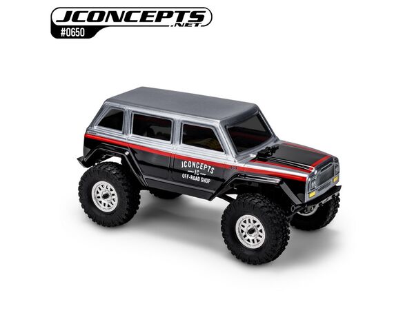 Die aus klarem Polycarbonat gefertigte und werkseitig vorgeschnittene Karosserie verfügt über viele realistische Details: eckige Frontscheinwerfer, horizontale Blinker, eine hohe Motorhaube mit Lufteinlass, geprägte Seitenlinien und einen Markanten Heckbereich. Mit einer schmalen Front von 68 mm ist reichlich Platz für Lenkung und große Reifen, wie die Modelle Tuck oder Landmines von JConcepts, gewährleistet.