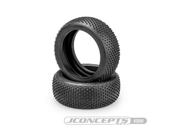 JConcepts hits the track with another weapon for the carpet and astroturf racing world, this time, for 1/8th buggy competition. The Nessi tire, shares styling cues from its successful 1/10th counterparts, but a slight increase in pin size and geometry make it quite the tire for 1/8th buggy vehicles. Racing on artificial surfaces require a lot of stability and forward-bite and the design team went to work to substantially improve performance. The new tire brings a new 3D blended pin-size, pin-separation, and a light-weight carcass.