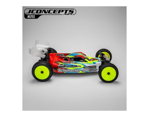 Gefertigt aus klarem Polycarbonat (wahlweise in Standard- oder Light), kommt die Karosserie mit zwei 6,5” Carpet | Turf | Dirt Flügeln, Fenstermasken und einem vielseitigen JConcepts Dekorbogen.