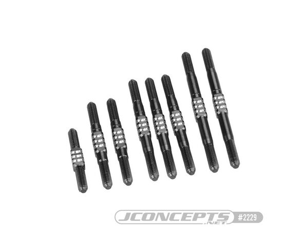 Die Fin-Spurstangen sind leicht und haben ein originelles Design, das die Eleganz und Qualität von Titan unterstreicht - eines der begehrtesten exotischen Materialien der Welt. JConcepts Spurstangen werden mit Links- und Rechtsgewinde hergestellt, wobei das Linksgewinde zur besseren Orientierung markiert ist. Das Set besteht aus acht Teilen und deckt ein komplettes RC10 Worlds Car ab, einschließlich der Spurstange vom Servo zur Lenkung.