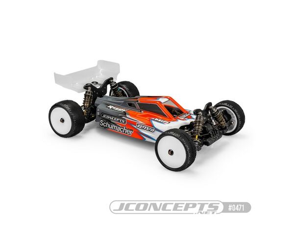 JConcepts S2 - Schumacher Cat L1R body w/ Carpet Turf wing - light-weight Karosserie klar, unlackiert What is the response when a popular new vehicle hits the market? It’s simple; add one of the most popular and best performing bodies to date to an already successful platform. Dubbed the S2, the new shell rocks some familiar features but rolled together with a low-profile stance. With 2015 IFMAR Championship credibility backing this design, it’s an easy choice. The S2 is a performer straight out of the package, includes the Carpet | Turf | Dirt rear wing to help deliver results on any racing circuit. Slammed overall height allows the S2 to whisk through the turns with a low center of mass while the progressive cab design provides plenty of front-end force for superior balance and steering. A channeled roof directs the flow through the center of the body while also increasing the rigidity of cockpit. The dual side-window design that has become famous on the JConcepts bodies rema