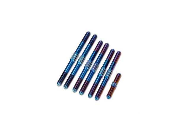JConcepts ist Titan mit der Einführung der 3,5 mm Fin Turnbuckle Sets, die speziell für Style, Haltbarkeit und Performance entwickelt wurden. Die Basis des Designs ist ein 3,7 mm Titan-Sechskant, der sich allmählich zu einer 3,5 mm Gewindebasis verjüngt, in die die Schumacher Kugelpfannen nach Modifikation* passen. Der Schwerpunkt des Designs liegt auf dem verlängerten Sechskant und den „Finnen“, die sich um das Zentrum drehen. Die Turnbuckles sind leicht und das einzigartige Design zeigt den Glamour und die Qualität, die Titan zu einem der begehrtesten exotischen Materialien der Welt machen. JConcepts Turnbuckles werden mit Links- und Rechtsgewinde hergestellt, wobei das Linksgewinde zur leichteren Orientierung markiert ist.