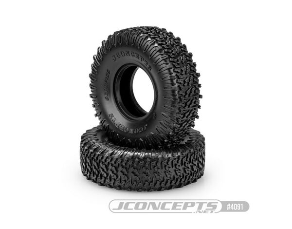 JConcepts Scorpios - green compound. 2.2" (5.25" OD) JConcepts unveils an all-new 2.2” all-terrain scaling tire from their design department especially for class 3 crawler truck competition. The Scorpios, scale looking tread, extra tall size, and profile, jump out as the most obvious features. Starting by analyzing the tread, the design team focused on a closely knit tread and arranging them in a pattern closely resembling a 1:1 scale tire. The padded arrangement of tread makes the tire ideal for transitioning from the hard road to dirt and then into rocky and uneven terrain. Once power is applied to the vehicle, the tread spacing opens which allows for some deep digging making it a great working tire in dirt and muddy conditions. The new tire is designed for the incredible and extremely capable class 3 vehicles which top out at the 5.25” overall size diameter. Each tread block has finely cut edges with a healthy radius where the block meets the tire body. Each block features sli