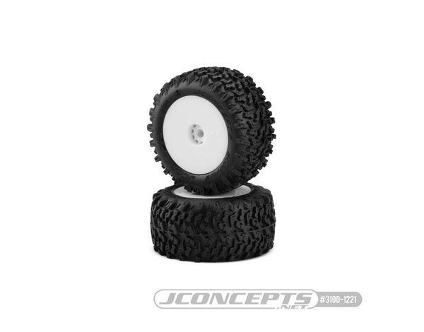 JConcepts Scorpios - green compound - pre-mounted, white wheels (2pcs)(Fits - Losi Mini-T 2.0 | Mini-B rear)