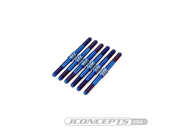JConcepts turnbuckle adjustment wrench is offered separately as part # 2234. The burnt blue turnbuckles have intentional sporadic coloring ranging all around the blue spectrum.