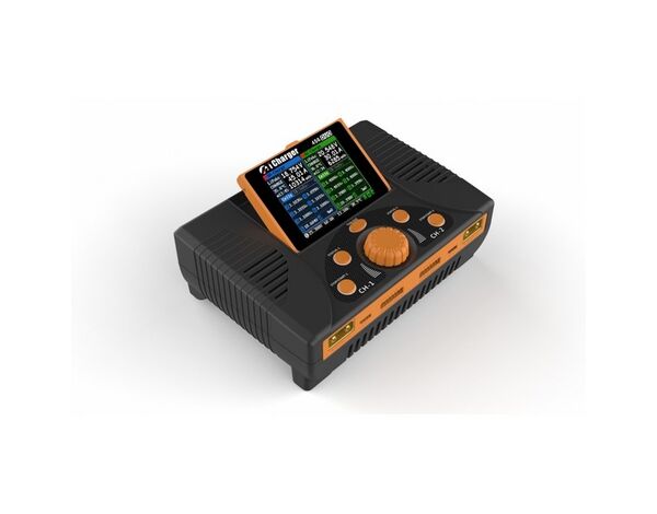 Kompaktes 2x 1400W Ladegerät. 70A Im Synchronmodus oder 2x 1100W 45A Asynchron. mit integriertem Balancer, USB Type-C Port und Kartenslot für Micro SD cards für die Logs.