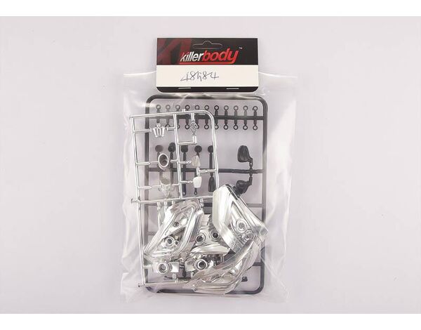 1-Chromed plastic parts 1 set: Front/rear light bucket; Foglight bucket; Exhaust pipe; Wing mirror lenses; Front/rear car badge; Doorknob