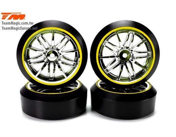 Reifen - 1/10 Drift - montiert - Starlight Felgen Silver / Yellow - 12mm Hex - 45° - Hard (4 Stk.)