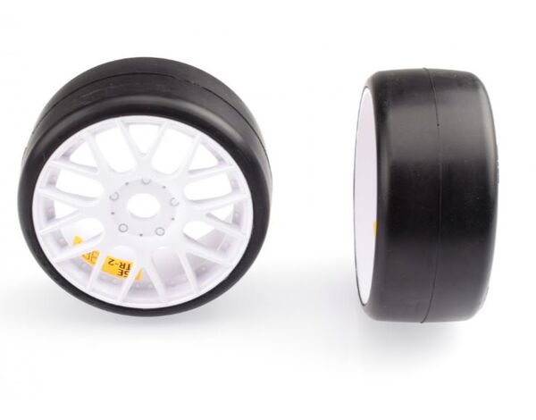 Sweep 1:8 GT-R2 Pro compound slick pre-glued tires 45deg with EVO16 White wheels pair (Double stage inserts)
