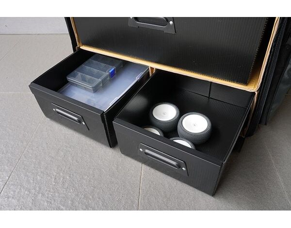 Die Koswork 1/10 Compact 3 Drawer Buggy Bag ist die perfekte Lösung, um Ihr 1/10 Fahrzeug und Zubehör kompakt und gut organisiert zu transportieren. Dank ihrer durchdachten Größe und verschiedenen Fächern ist sie ideal für den Einsatz auf der Rennstrecke oder unterwegs.