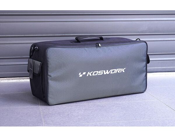 Die Koswork 1/8 Reifen- und Zubehörtasche ist speziell entwickelt, um Reifen, Werkzeugkasten, Autos und alles, was Sie benötigen, sicher zu verstauen. Sie enthält eine stabile, Wellpappe verstärkte Kunststoffbox, die Ihre Gegenstände schützt. Zwei Seitentaschen bieten zusätzlichen Platz für Werkzeuge, Kleber oder Kleinteile. Im Inneren der Tasche befinden sich zwei Reißverschlusstaschen aus Mesh-Gewebe, in denen Sie Anleitungen und RC-Zubehör aufbewahren können. Ein verstellbarer Schultergurt ist im Lieferumfang enthalten. Die Tasche bietet ausreichend Platz, um bis zu 40 Stück 1/8 Buggy-Reifen zu transportieren.