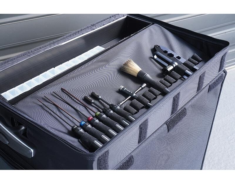 Die Koswork 1/8 Classic Buggy/Onroad Car Hauler Bag ist die ideale Lösung, um all Ihr Equipment übersichtlich und sicher zu transportieren. Mit einer Vielzahl von Taschen und Fächern können Sie Ihr Fahrzeug und Zubehör gut organisiert aufbewahren.