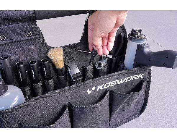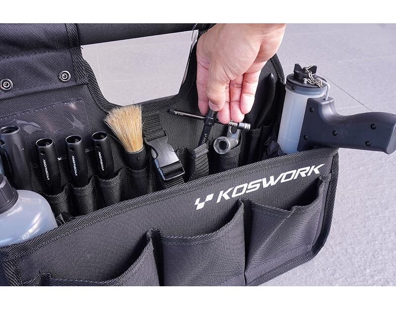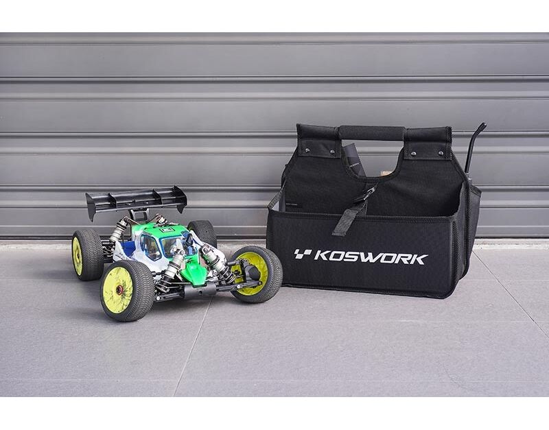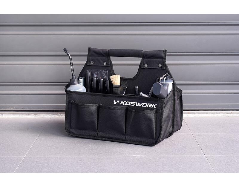 Entworfen und hergestellt in Taiwan, bietet die Koswork Pit Caddy Bag/Starter Box Bag/Tool Bag V2 Bequemlichkeit und Funktionalität für RC-Enthusiasten.