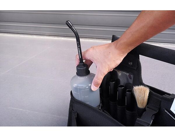 Organisierter Stauraum: Die Tasche ist in zwei Hälften geteilt, eine für die Starter-Box und die andere für Gegenstände wie die Kraftstoffflasche.