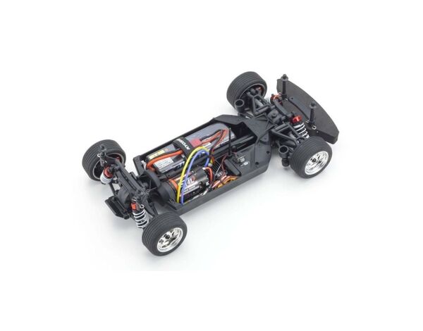 Für den puren Fahrspaß mit dem RC-Auto ist die Kombination einer wunderschön reproduzierten Karosserie mit dem FAZER-Chassis unschlagbar. Kyosho hat sein Standard Tourenwagen-Chassis mit einem kompletten Modell-Makeover versehen, das die Leistung auf ein neues Niveau gebracht hat. Ein vereinfachtes Design mit weniger Teilen hat die Wartungseffizienz verbessert und das Gewicht reduziert. Die Festigkeit und Steifigkeit des Kerns wurde durch neue Materialien und Versteifungen an Vorder- und Rückseite erhöht. Zusätzlich sorgt das symmetrische Fahrwerkskonzept für eine hervorragende Balance zwischen Vorder- und Hinterachse durch die Federung mit ansprechender Steuerung, unabhängig von der Stromquelle. Eine Rutschkupplung, Differenzial für Vorder- und Hinterradgetriebe, Ölstoßdämpfern und vollen Kugellagerspezifikationen ermöglicht die hohe Haltbarkeit und Stoßfestigkeit das volle Potenzial des Fahrgestells. Bremsscheiben-Radnaben mit zwei verschiedenen Versätzen (0 mm, + 5 mm) bieten Kompatibilität mit Karosserietypen mit 190 mm und 200 mm Breite. Sie können den Radstand auf 260 mm einstellen, indem Sie einige Teile (separat erhältlich) austauschen, um die Kompatibilität mit anderen Karosserieformaten im Maßstab 1/10 zu gewährleisten.