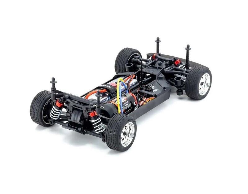 For the pure enjoyment of R/C car driving, the combination of a beautifully reproduced car body with the FAZER series chassis can’t be beaten. Kyosho has taken its standard touring car chassis and given it a full model makeover that has evolved performance to a new level. A simplified design with fewer parts has improved maintenance efficiency and reduced weight while core strength and rigidity has been increased through new materials and ribbing and stiffeners on front and rear. In addition, the symmetrical chassis design synergizes excellent front-rear balance through the suspension with responsive control, irrespective of power source. Featuring slipper clutch, front & rear gear differentials, oil shocks and full ball bearing specs, the high durability and impact resistance allows drivers to unleash the full potential of the chassis. Brake disc wheel hubs with two different offsets (0mm, +5mm) provide compatibility with 190mm and 200mm width body styles and allows the wheelbase to be adjusted to 260mm by replacing some parts (sold separately) for compatibility with other 1/10 scale body styles, in addition the body included. The Readyset package comes fully assembled and includes everything except charger and battery for the chassis, and batteries for the transmitter.