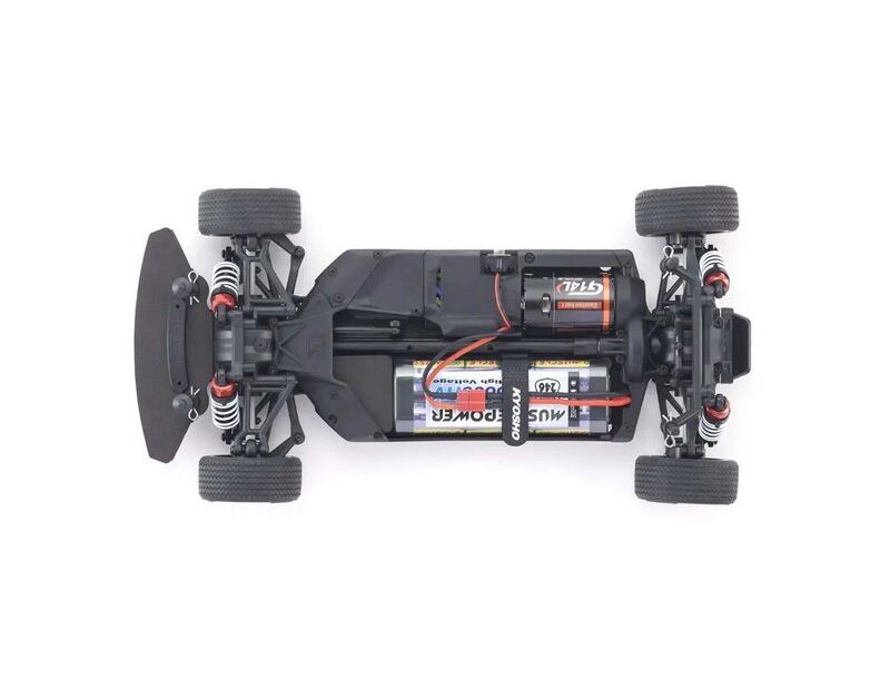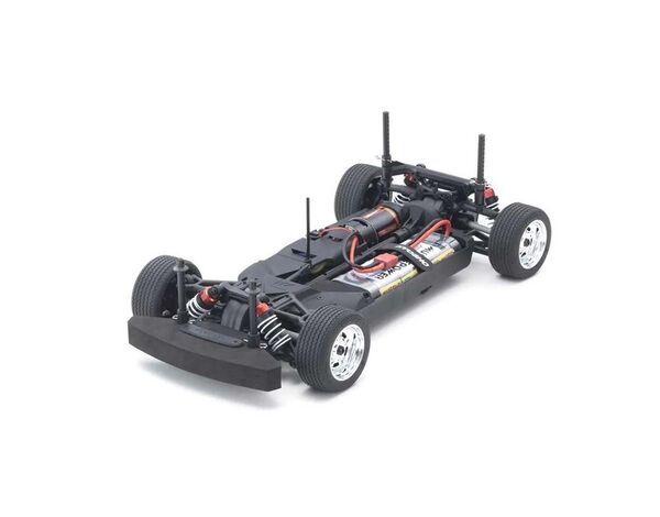 For the pure enjoyment of R/C car driving, the combination of a beautifully reproduced car body with the FAZER series chassis can’t be beaten. Kyosho has taken its standard touring car chassis and given it a full model makeover that has evolved performance to a new level. A simplified design with fewer parts has improved maintenance efficiency and reduced weight while core strength and rigidity has been increased through new materials and ribbing and stiffeners on front and rear. In addition, the symmetrical chassis design synergizes excellent front-rear balance through the suspension with responsive control, irrespective of power source. Featuring slipper clutch, front & rear gear differentials, oil shocks and full ball bearing specs, the high durability and impact resistance allows drivers to unleash the full potential of the chassis. Brake disc wheel hubs with two different offsets (0mm, +5mm) provide compatibility with 190mm and 200mm width body styles and allows the wheelbase to be adjusted to 274mm by replacing some parts (sold separately) for compatibility with other 1/10 scale body styles, in addition the body included. The Readyset package comes fully assembled and includes everything except charger and battery for the chassis, and batteries for the transmitter.