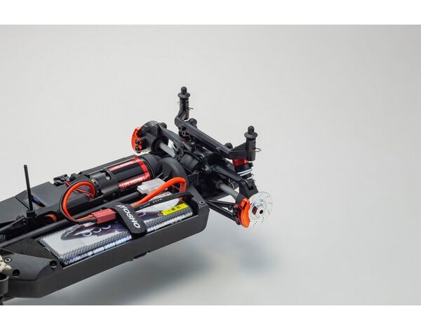 For the pure enjoyment of R/C car driving, the combination of a beautifully reproduced car body with the FAZER series chassis can’t be beaten. Kyosho has taken its standard touring car chassis and given it a full model makeover that has evolved performance to a new level. A simplified design with fewer parts has improved maintenance efficiency and reduced weight while core strength and rigidity has been increased through new materials and ribbing and stiffeners on front and rear. In addition, the symmetrical chassis design synergizes excellent front-rear balance through the suspension with responsive control, irrespective of power source. Featuring slipper clutch, front & rear gear differentials, oil shocks and full ball bearing specs, the high durability and impact resistance allows drivers to unleash the full potential of the chassis. Brake disc wheel hubs with two different offsets (0mm, +5mm) provide compatibility with 190mm and 200mm width body styles and allows the wheelbase to be adjusted to 274mm by replacing some parts (sold separately) for compatibility with other 1/10 scale body styles, in addition the body included. The Readyset package comes fully assembled and includes everything except charger and battery for the chassis, and batteries for the transmitter.