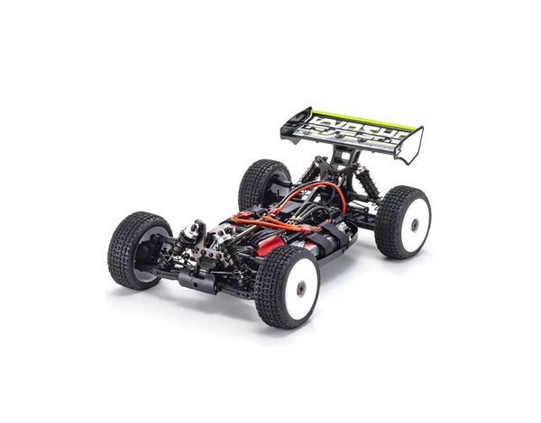 The worldwide status of the 1/8 scale buggy category has been built on a combination of high speed and dynamic fun. In recent years, EP (electric) buggies powered by batteries and electric motors have grown in popularity. Based on its celebrated 1/8 GP Inferno series buggy, Kyosho releases the electric powered Inferno MP10e Readyset! The new MP10e features significant updates but inherits the Inferno MP9e Evo. V2’s optimal weight balance from its left-right battery distribution that became adopted widely in 1/8 EP buggy designs. This layout also allows easier maintenance. Output characteristics of the KV2300 motor can be programmed on BRAINZ 8 ESC (electronic speed controller). With the R/C system pre-installed, you can be driving after unpacking the model and charging the battery. Equipped with the newly developed high torque and waterproof KS5071-09MW steering servo, the MP10e can handle the heavy loads of hard off-road driving. The cornerstone of the MP10e’s high performance and reliability is the suspension system, which is similar to the Inferno MP10 GP model. Not only can you outrun GP models with the Inferno MP10e; this high-powered electric machine is packaged as a Readyset with the racing potency to succeed at the highest level.