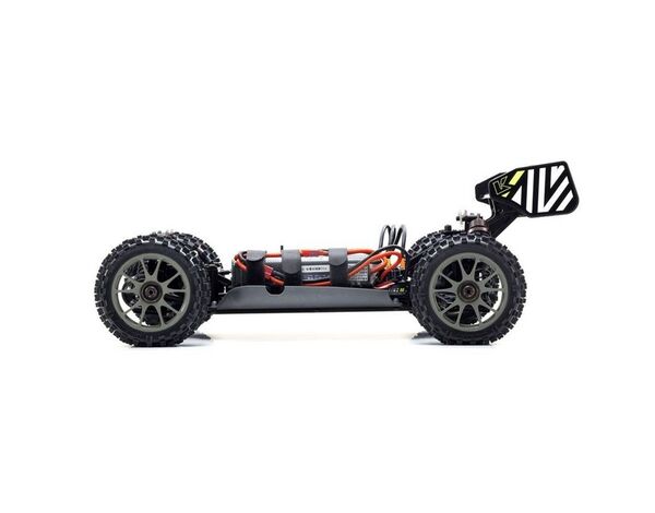 Factory assembled Inferno NEO 3.0 VE Readyset delivers blistering acceleration of 0-50m in 3.5 seconds; now updated with minor changes. With its formidable reputation built on the racing scenes around the world, the VE uses the flagship model as a base to add a new brushless motor & ESC. The Syncro KT-231P+ transmitter delivers vastly improved control and features precision setting adjustments with throttle end point adjust, dual rate adjuster, plus a high-torque and high-speed steering servo. In addition, the powerful KYOSHO SPEED HOUSE brushless motor and ESC combines with big bore oil shocks and KC Cross tires to deliver superior performance on any surface. The Inferno NEO 3.0 VE allows anyone to test the bounds of common sense with powerful brushless motor acceleration.