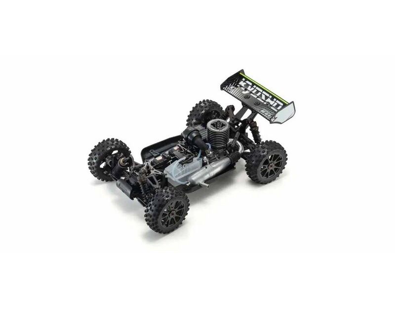 Die 1/8 Inferno GP Buggy-Serie von Kyosho ist weltweit als Rennmodell der Spitzenklasse anerkannt. Der Inferno NEO 4.0, basierend auf dem Inferno, wird als Readyset mit vormontiertem Chassis, eingebautem Motor, RC-System und lackierter Karosserie geliefert. Nach dem Einlegen der Batterien in den mitgelieferten Pistolengriff-Sender und das Chassis sowie dem Befüllen des Kraftstofftanks ist der Inferno NEO startklar. Anfängern wird der schwierige Einfahrprozess des Motors durch einen Einfahrring erleichtert, der das Einstellen der Nadeln überflüssig macht. Der sanft anspringende Motor macht den Einstieg in die GP-Modelle leicht. Er teilt sich die Karosserie mit dem elektrischen Inferno NEO 4.0 VE und ist in zwei Farbvarianten erhältlich. Die drehmomentstarken Lenk- und Drosselklappenservos des Vorgängermodells sorgen für eine zuverlässige Kontrolle, auch unter anspruchsvollen Offroad-Bedingungen. Der Inferno NEO 4.0 bietet sowohl Einsteigern als auch erfahrenen R/C-Enthusiasten eine aufregende Buggy-Performance im Maßstab 1/8.