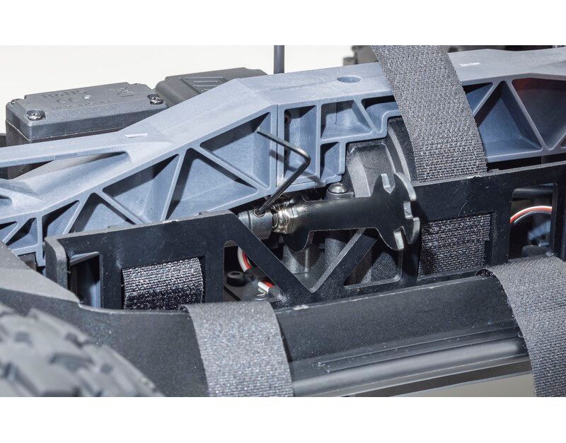 ● Equipped with lightweight resin telescopic universal shafts on all four wheels to reduce drive loss and prevent drive shaft drop outs in contact.