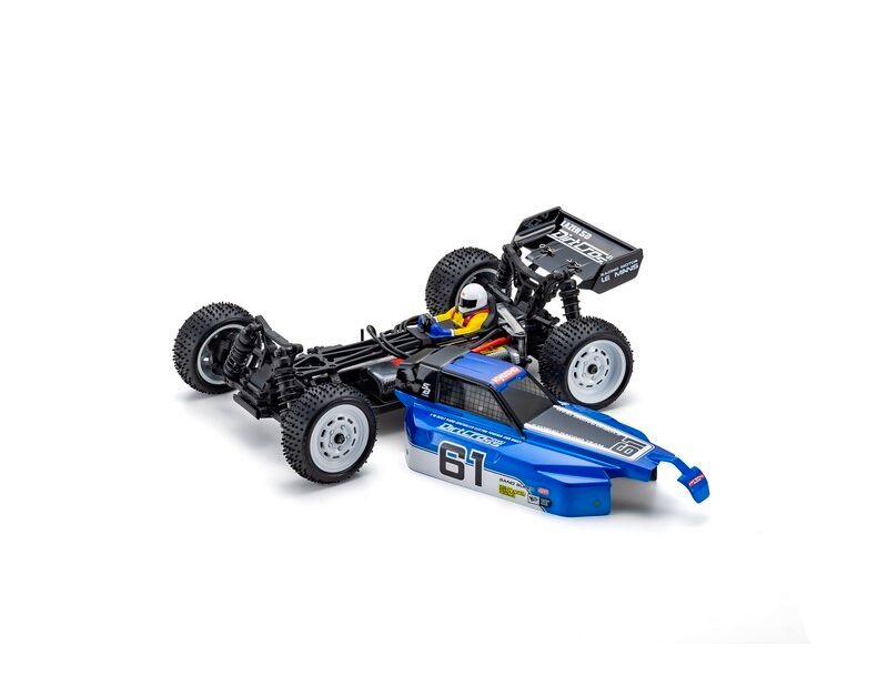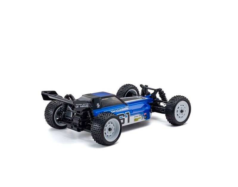 In the long and distinguished history of 1/10 EP (electric) R/C racing buggies, there are two types based on different drive systems. Rear 2WD models are typically easier to assemble and maintain and exhibit nimble driving characteristics; and then there are the equally popular 4WD models, which use drive force to all four wheels for superior traction on low-grip roads compared to 2WD. For drivers considering a step up from entry-level models, we are proud to introduce the Lazer SB Dirt Cross 4WD, which is a cost-optimized version of the competition-level ZX-5 that has continued to evolve performance and control as the cutting-edge of Kyosho’s worldwide 4WD EP buggy racing campaigns. While the suspension and driven system are retained from the proven Lazer ZX-5, the Dirt Cross does much more than reduce costs; it is designed to appeal to a new generation of R/C racers. While retaining its basic shape, the main chassis has been updated and optimized for the latest battery and motor systems. However, the body has been completely redesigned with a rear positioned cabin (instead of the usual forward-cabin of racing models), driver figure, and newly developed spoke wheels for a classic retro buggy style. As the Dirt Cross is based on a purebred race model, performance is guaranteed. Combining the most comprehensive fit out at a great value price, all the fun and performance off-road R/C has to deliver is perfectly optimized into this mid-range 4WD buggy.