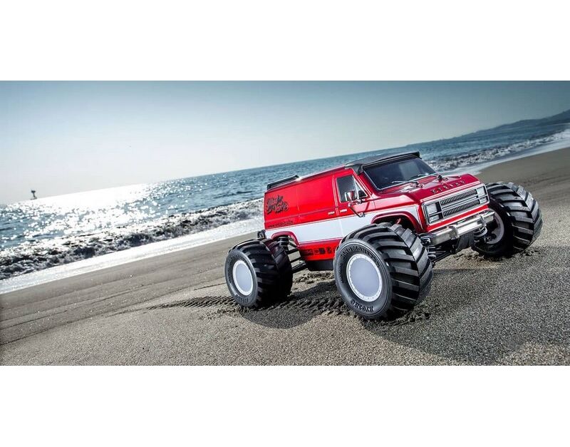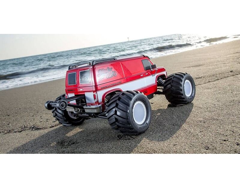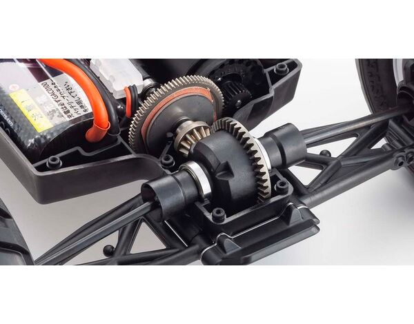 Enhanced scale features of the American street van styled FAZER Mk2 MAD VAN combine with a 50% increase in maximum speed with the change to brushless motor power in this 1/10 scale VE model. In place of the conventional G14L brushed motor, the new model combines the powerful TORX 10E brushless motor with BRAINZ 10 speed controller to lift the maximum speed from 40km/h to 60km/h. To manage the extra power and RPM, gears have been reinforced and reduction ratio optimized on the FZ02L-BT chassis base, which now incorporates the previously optional aluminum HD center shaft L. In addition to chassis improvements, the body styling has also received a 3-D enhancement with molded resin grille and lights replacing decals, and a roof guard has been added to protect the body from rollovers. With elevated performance and appearance, you can experience the exhilaration of running wild at high speed with the MAD VAN VE.
