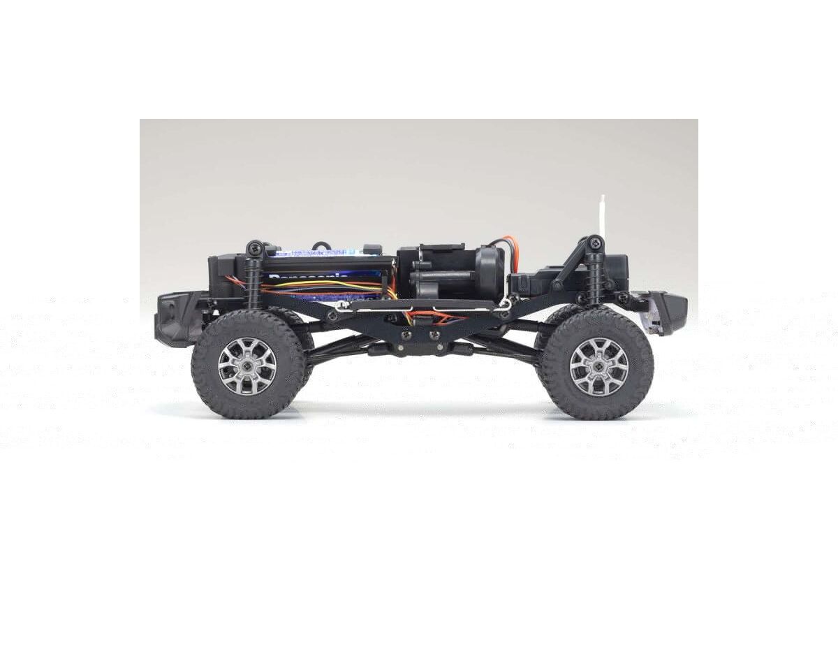 In 2019 the world's most popular mini RC series, known as the Kyosho MINI-Z, celebrated more than 20 years of unmatched performance and scale realism in the hobby-grade RC category. The continuous pursuit of performance and evolution has led to the creation of a completely-new ‘MINI-Z 4x4’ design that delivers an all-new driving experience for RC fans of all stripes, with superior overall design, driving performance and high-quality injection-molded scale body construction. A significant feature of the MINI-Z 4x4 series is the greater emphasis of body detail and quality of finish that even surpasses existing benchmarks set by the MINI-Z. The body is also molded with thicker material to better resist crash damage from operation in rough terrain. Incorporating the same ladder- style frame of real 4WD vehicles, the MINI-Z 4x4 boasts a 3-link rigid axle suspension combining what would normally be two upper links into a single upper A-arm to deliver maximum suspension movement. A specially designed high-torque steering servo enables this machine to throw its elbows around in the hard terrain for excellent performance in the toughest rock-crawler conditions. The high-torque 130-size motor brings out the beast in the MINI-Z 4x4, specially geared to run well in the low to medium speed ranges common in crawling.