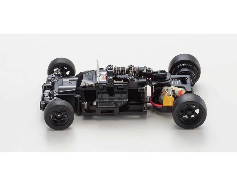 With just 8 x AAA-size batteries, the MINI-Z Racer allows anyone to enjoy the beautiful style and advanced performance of R/C cars. First launched in 2013, Kyosho has renewed the MINI-Z Racer Sports MR-03 concept to be even more user-friendly and appealing to more drivers with the MINI-Z RWD series! Widely popular body styles in highly detailed body sets create the incredibly realistic model lineup. Including the latest Syncro KT-531P transmitter with steering trim, throttle trim, dual rate, LED control function, the sponge grip of the steering wheel provides comfortable fit for precision control feel. The set also includes a car body finished to display-model standard that matches stunning style with the performance, reliability and durability of the MR-03 chassis. The new control program on the newly designed circuit board realizes linear handling characteristics and can be further enhanced for even easier control by installing the optional gyro unit (MZW446). This series represents the perfect package for a deep dive into the amazing world of R/C cars!