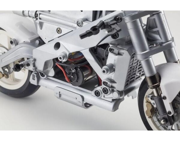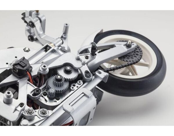 Seit es 1992 Kyosho das erste Hanging On Rider-Modell auf den Markt gebracht hat, ist es populaerer denn je. Das Halb-Direkt-Steuerungssystem bietet hohe Leistung mit voellig unabhaengiger Bewegung mit der Fahrerfigurkonstruktion, die auf dem Motorrad mit in die Kurven legt. Das Ergebnis ist eine Fahrleistung wie ein echtes Motorrad, das fuer jedermann ganz einfach zu fahren ist. Darueber hinaus wurde jeder Abschnitt des Motorrades unglaublich detailgetreu entworfen: die Motorhaube, die Feder-Front-Gabel, die Bremsscheibe und Bremssaettel, die Raeder, die Antriebskette, das Ritzel und der asymmetrische Schwingarm, um ein Modell mit Standardqualitaet neu zu erschaffen . Da jedoch nur wenige Teile in der Konstruktion verwendet werden, koennen auch Anfaenger den einfachen Zusammenbau geniessen, der nur kurze Zeit in Anspruch nimmt. Tauchen Sie ein in das faszinierende Reich des RC-Elektromotorradfahrens wie nie zuvor und entdecken Sie den puren Genuss des Zusammenbaus, des Zeigens und Fahrens Sie Ihres eigenen Hanging On Racer.