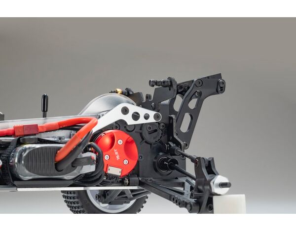 Der Optima Mid ist bekannt für sein brillantes Debüt bei der 2. Weltmeisterschaft für elektrische Geländewagen in England 1987, wo der Prototyp 5 von 10 Qualifikanten im A-Main-Finale belegte und den zweiten Platz belegte. Das Chassis-Layout von Optima mit mittschiffs positioniertem Motor und Fahrwerk wurde immer beliebter und wurde zur Grundlage für moderne Rennbuggys. Es ist dieser Optima Mid, der als 10. Modell der Kyosho-Vintage-Serie nachproduziert wird. Das Hauptchassis besteht aus einer 6016T6-Aluminiumlegierung, die eine hohe Steifigkeit garantiert. Jede Komponente des Autos wurde aktualisiert, um sie an ein modernes Antriebssystem anzupassen, wie z. B. das 48-Gang-Getriebe für verbesserte Effizienz und präzise Einstellung der Übersetzungsverhältnisse. Der nachgebaute Optima Mid verfügt auch über eine einstellbare Riemenspannung mit einem damals nicht verfügbaren Spanner. letztendlich eine reibungslose Fahrt mit minimalem Verlust zu erreichen. Darüber hinaus wurden Ausstattungsmerkmale des Turbo Optima Mid wie die FRP-Stoßdämpferstreben vorne und hinten sowie das versenkte Hauptchassis in dieses Modell integriert. Die rassige Form des Original-Optima-Mid-Körperdesigns wird der beliebten Vintage-Serie originalgetreu nachempfunden. Erleben Sie den treibenden Geist des Optima Mid mit modernster Mechanik aus der Vergangenheit, die heute durch nichts zu übertreffen ist.