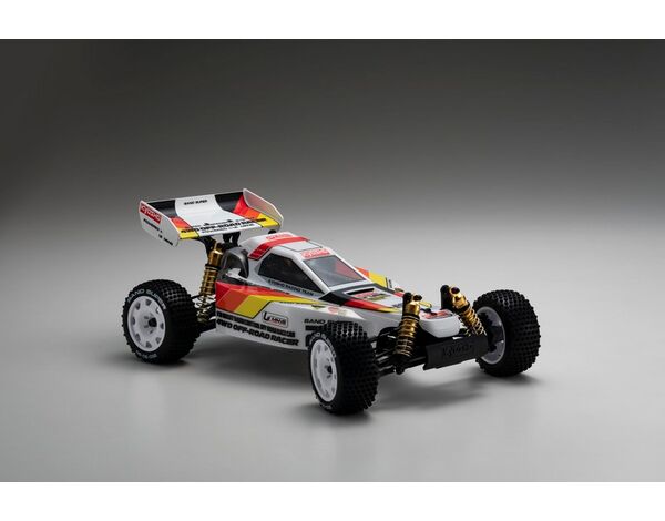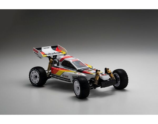 ● Das 10. Modell der Kyosho Vintage-Serie. Der beliebte 4WD-Buggy, der ein brillantes WM-Debüt feierte, wurde in modernem Stil aktualisiert.