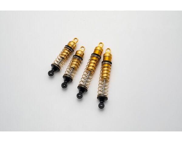 Ausgestattet mit goldeloxierten Ölstoßdämpfern, die den Druckstößen ähneln, die die Ära dominierten. Die Einstellradeinstellung ermöglicht eine einfache Fahrzeughöhenabstimmung für eine präzise Fahrwerkseinstellung.