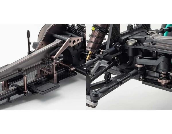 Special Equipment:Optima Pro body / Large polycarbonate rear wing / Special decals / Peppermint green wheels for Ultima / Ball diff.(F&R) / Front universal swing shaft / Carbon main chassis / Carbon upper deck / Carbon shock stay (F&R) / Gunmetalic anodized aluminum parts / HD Deck mount / HD Rear sus holder / HD Servo mount / HD ST plate / High strength sus plate (F&R) / 7075 Duralmin main gear shaft / Aluminum M4 concave washer / Titanium coated shock shaft (F&R) / F&R Fine selection shock spring(MH) / Turnbuckle rods(38&50mm) / Ball bearings for servo saver / Soft compound tires (F&R)