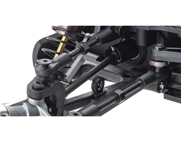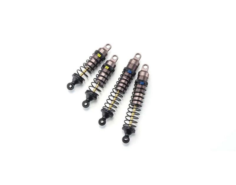 ●The front and rear shocks are finished in gunmetal and the shafts are coated with titanium to improve wear resistance. Front and rear springs are adopted with fine selection springs.