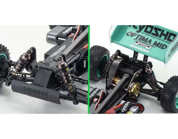 England 1987 was the scene of the 2nd IFMAR (International Federation of Model Race Cars) electric off-road world championships. In addition to the standard Optima, Team Kyosho entered a midship motor mounted prototype in the 4WD Class. Racing under its ‘Mid Optima’ project name, the prototype stunned the world making up five of the ten cars to qualify through to the A-Main Final, but unfortunately missing out of the top prize in finishing a credible 2nd to demonstrate its outstanding performance potential. The prototype was close to the final product released to the market under its official name ‘Optima Mid’ allowing racers around the world to experience its revolutionary capabilities. Still as popular as the original back in 1980, the Optima Mid joined esteemed company as part o