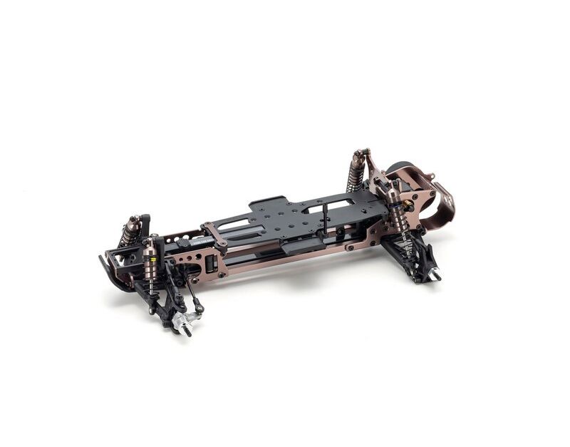 From its debut in 1985 the Kyosho Optima 1/10 scale electric 4WD buggy quickly established itself as a top-level competition model. The innovative design featured a ladder frame with rear motor layout like the 2WD Scorpion series but incorporated a chain drive to the front wheels. The pinnacle of the Optima series evolution was the Optima Pro released in 1987. Retaining the frame and drive system, the relaunch of the Optima Pro uses the advanced slim aero body and underbody form with revised mounting positions of the battery and steering servo to improve weight distribution and concentrate heavy components in the center of the chassis for significant performance improvements. After 37 years, the Optima Pro is making its long-awaited comeback as the 15th model of the Kyosho Vintage Series. Like other Vintage Series models, it retains the same basic design but with updates that match each component to modern R/C systems and power sources. These functional components are unique to the modern version of the Optima Pro. The frame is a traditional ladder tube type incorporating a belt-driven 4WD system, which was an option on the original, and a gearbox with increased durability. The modernized radio plate mounts the battery and R/C components and is unique to the modern Optima Pro. Major aluminum parts, including the front and rear oil shocks, have a gunmetal finish that was a signature color of the Kyosho works team at the time. The Optima’s timeless slimline body and underbody design delivers enhanced aerodynamic performance. Although the original version had a short sales period of only about six months, the revival of Optima Pro will make the Kyosho Vintage series even more exciting for years to come as the ultimate rear-motor powered Optima.