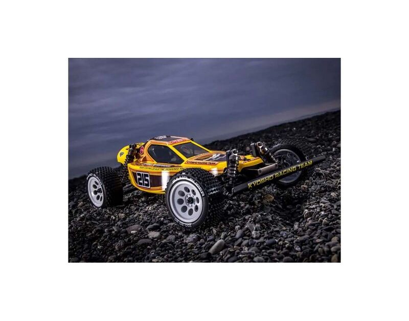 Reproduction of this legendary rear-motor 4WD buggy is enhanced with the latest technology to become the 15th model of the Kyosho Vintage series.