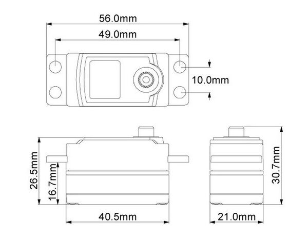 - Speed:0.08sec/60°(7.4V) 0.09sec/60°(6.0V)