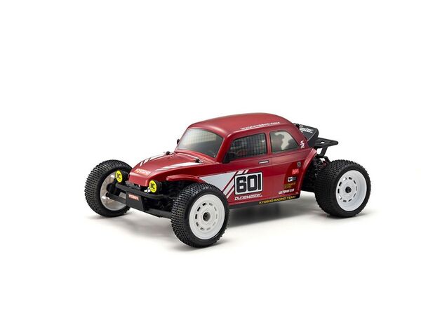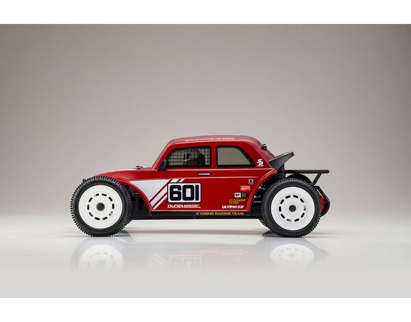 Off-road buggies are famous for their ‘go-anywhere’ capabilities and the 1/10 scale EP (electric) format is particularly popular. True to its dirt bashing prowess, Kyosho is proud to introduce the ‘Dune Master’ to the Ultima SB series of mid-class EP buggies. Built on the Ultima SB chassis with rear motor RWD (rear wheel drive) for its superior rear tire traction and maneuvrability, the Dune Master features a new basher body that looks like a modified car rather than the open wheel buggy style. New tire and wheel designs highlight the appeal of the original car body style. Based on the Ultima RB5 chassis which was previously a competition-level racer, each component has been reviewed to deliver superior handling and control for beginners at an optimal price. The rear motor configuration improves rear grip, allowing for traction stability on low-grip surfaces such as sports fields and open terrain as well as delivering high-speed performance on proper R/C race tracks. The new Ultima SB Dune Master and its highly popular Ultima SB Dirt Master predecessor, set the standard for modern mid-class buggies that can be enjoyed by all drivers, either as a step up from entry-level models, or as a second car for experienced drivers.