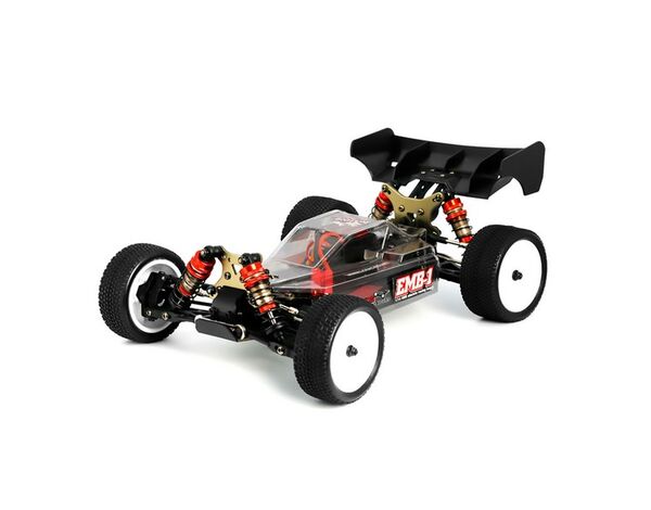 Das EMB-1 Pro Kit enthält im Vergleich zum EMB-1 RTR Buggy Ti-Nitrid beschichtete Hochleistungs-Kolbenstangen, 17T, 18T sowie 19T Motor Ritzel und Stabilisatoren.