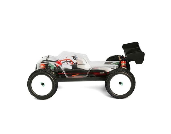 Das EMB-TG Pro Kit enthält im Vergleich zum EMB-1 RTR Buggy Ti-Nitrid beschichtete Hochleistungs-Kolbenstangen, 17T, 18T sowie 19T Motor Ritzel und Stabilisatoren.