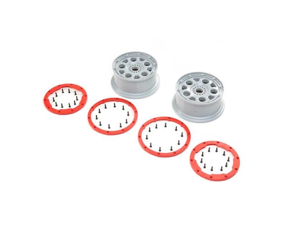 LOS45033 DBXL-E 2.0 Wheels Silver Red Bead L ock (2)