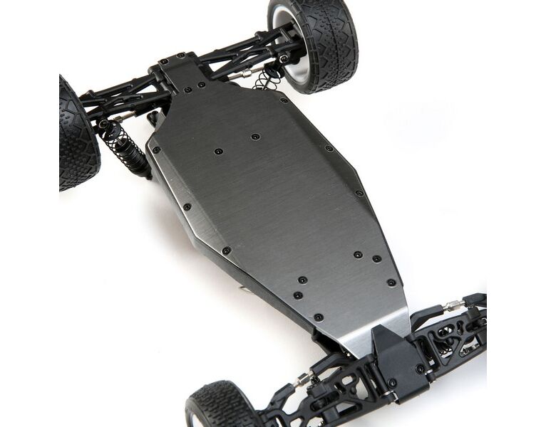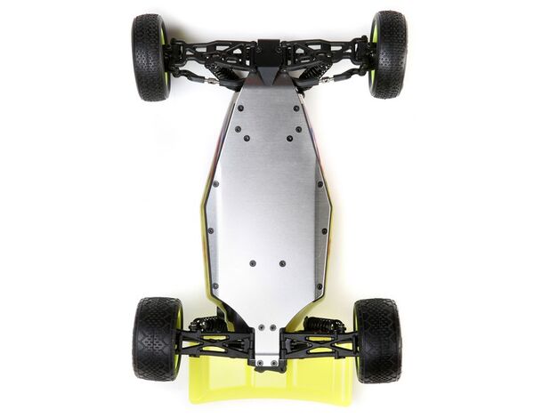 Die Fahrwerksgeometrie des Mini-B wurde von der TLR 22B Buggy Plattform abgeleitet und bietet durch das optimierte Race-Design eine ausgewogene Lenkung und Traktion