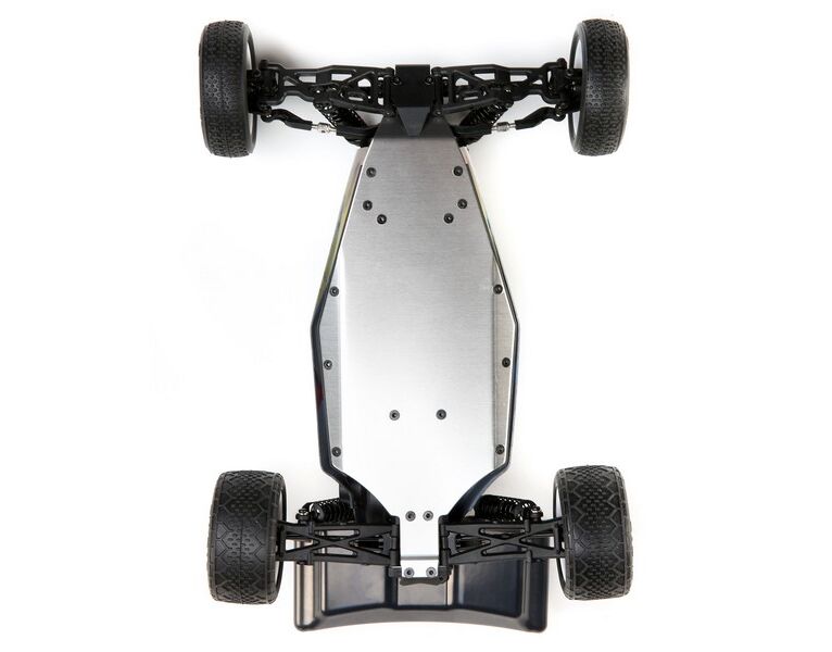 Die Fahrwerksgeometrie des Mini-B wurde von der TLR 22B Buggy Plattform abgeleitet und bietet durch das optimierte Race-Design eine ausgewogene Lenkung und Traktion