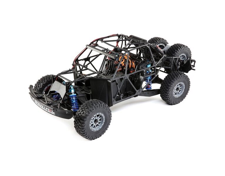 The foundation of the Super Baja Rey 2.0 consists of a 4mm, anodized aluminum chassis plate with a 4mm upper deck. For added durability and performance it's integrated with a realistic roll cage made of super-tough composite material. Whether you are hitting the whoops, getting huge air, or just wide open, the 4mm chassis just keeps asking for more!