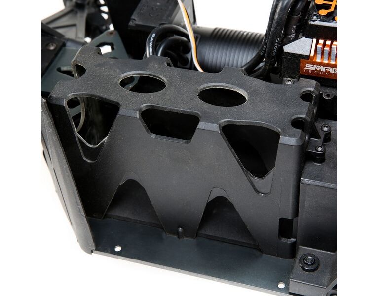 Just like the 1:1 desert trucks, the Super Baja Rey 2.0 comes with a super-rigid roll cage made of super-tough composite material that enhances the truck's scale looks and durability. It is integrated with the 4mm anodized aluminum chassis plate providing the ultimate protection for your truck and electronics.